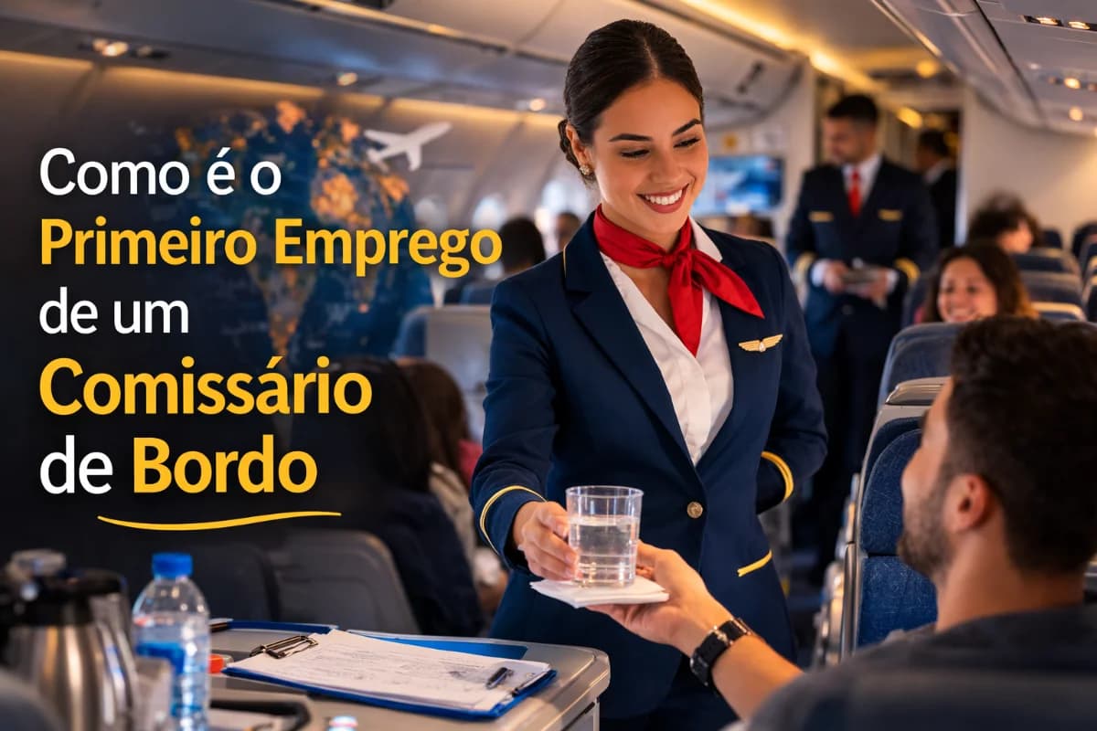 Descubra como é o primeiro emprego de um comissário de bordo, desde os requisitos até as experiências práticas iniciais.
